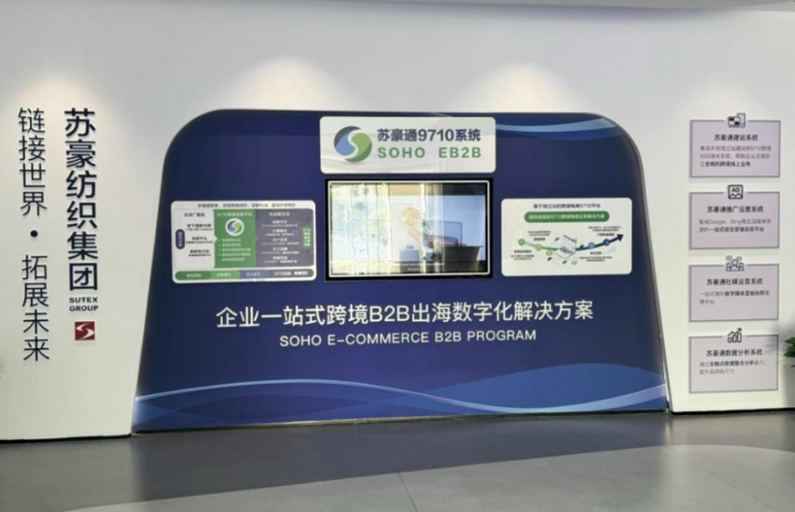 苏豪通系统是为跨境电商贸易企业和工业生产型企业量身定做合规的9710跨境批发业务的电子商务平台,致力于帮助企业一站式合规出海,具备转码、引流、运营、优化、大数据分析等功能,已在南京、南通、无锡等地签约落地,服务30余家企业,自2021年苏豪通跨境电商系统运行以来,苏豪纺织集团及其服务的跨境电商B2B企业累计实现经海关认定的9710跨境电商出口报关数据超过1亿美元,获得服务企业广泛认可。基于苏豪通系统在跨境B2B领域的创新实践,苏纺集团被中国电子商会评为“贸易数字化赋能产业化发展推荐合作单位”,中国服务贸易协会评为“中国跨境电商创新案例”。