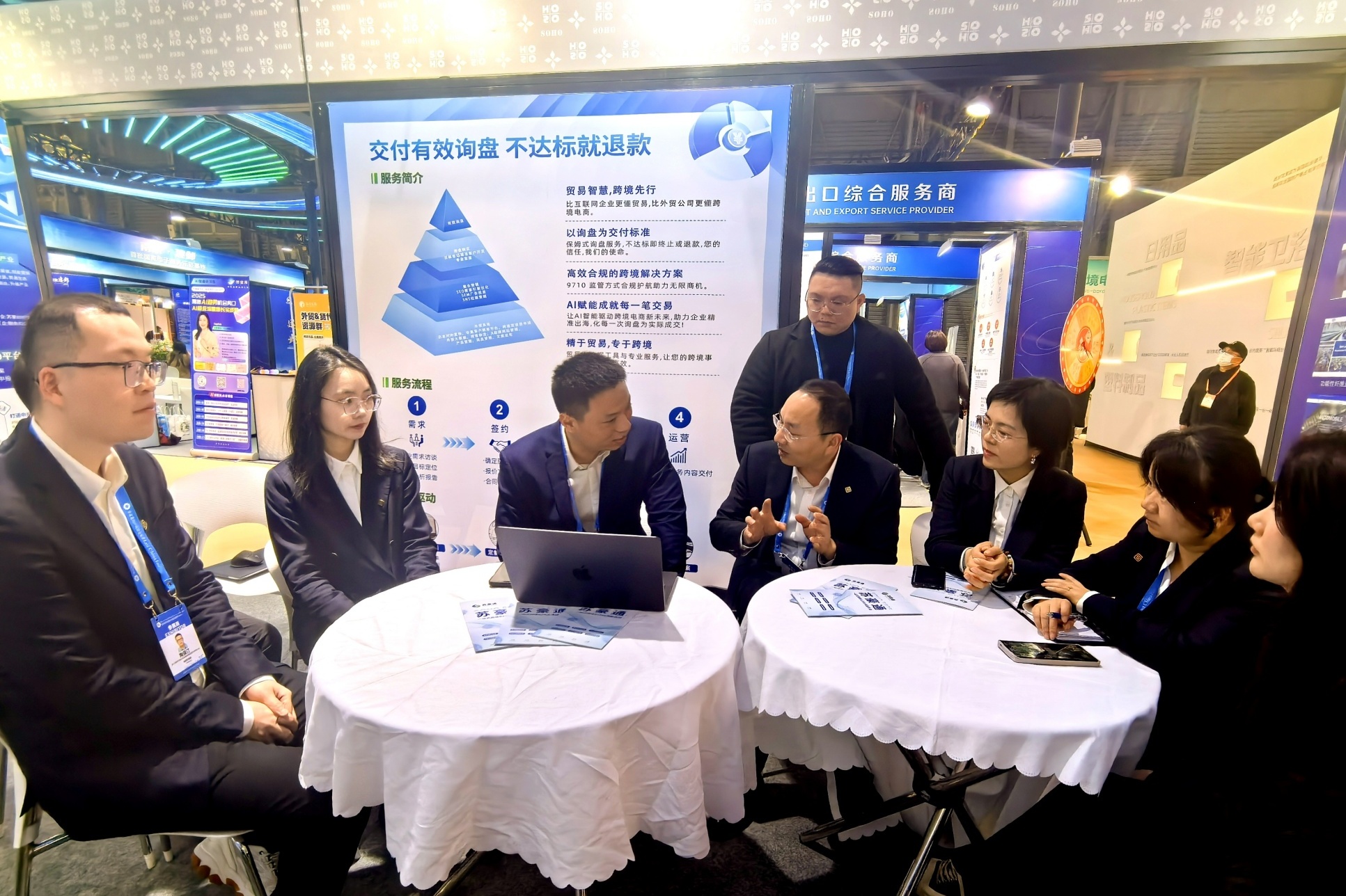 泓纲科技党支部牢牢把握“跨境电商是外贸领域新质生产力”理念,以“党建+数字化”驱动传统外贸转型升级。一是攻坚硬核平台。针对传统工贸企业“出海难”痛点,党员骨干攻坚克难,成功研发全国首个聚焦9710跨境电商通关的省级数字化服务平台——“苏豪通9710”系统,服务全省“跨境电商+产业带”项目,获评中国服务贸易协会“2023跨境电商创新案例”,并入选“江苏省内外贸一体化融合发展综合服务平台”。二是创新服务模式。依托外贸经验,结合“合规+流量+生态”三位一体思路,推出通关版、运营版、全托管服务三大解决方案,助力集团内外150余家企业一站式合规出海,累计完成9710出口超13.58亿美元,成为江苏外贸高质量发展的重要力量。三是构建“一站式出海”生态。激励“党员先锋队”攻克V3系统升级难题,优化AI模块,提升系统运营效能,让更多企业通过网络实现“买全球”“卖全球”。创新搭建23个独立站,率先推出全托管模式,打造“永不落幕的广交会”,累计吸引有效询盘700余个,促成订单超1300万美元。