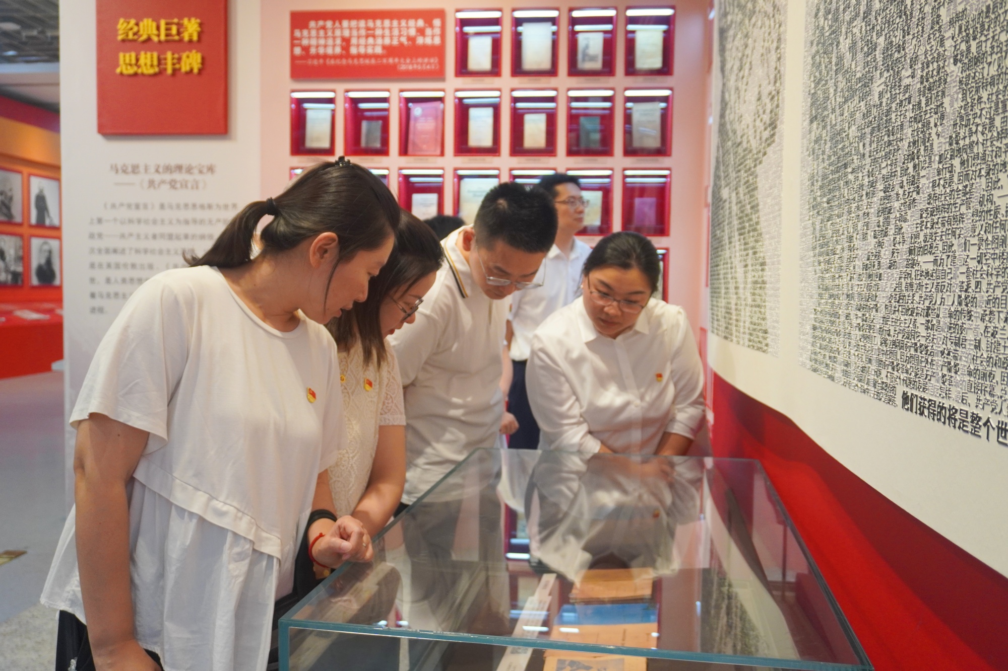 活动伊始,双方走进南京图书馆“信仰之光”马克思主义文献典藏馆。本次展览共展陈近400件文献,通过“真理力量薪火相传”“手稿藏书经久弥珍”“经典巨著思想丰碑”“‘两个结合’最大法宝”4个部分,生动呈现了马克思主义经典著作的创作和传播过程,深刻揭示了以习近平同志为核心的党中央提出“两个结合”重大命题的思想脉络和实践历程。党团员们认真聆听讲解,在一份份承载着思想火花的文献前驻足凝视,在回望思想源头中,进一步筑牢了对马克思主义的信仰之基,增强了运用党的创新理论武装头脑、指导实践、推动工作的政治自觉和行动自觉。