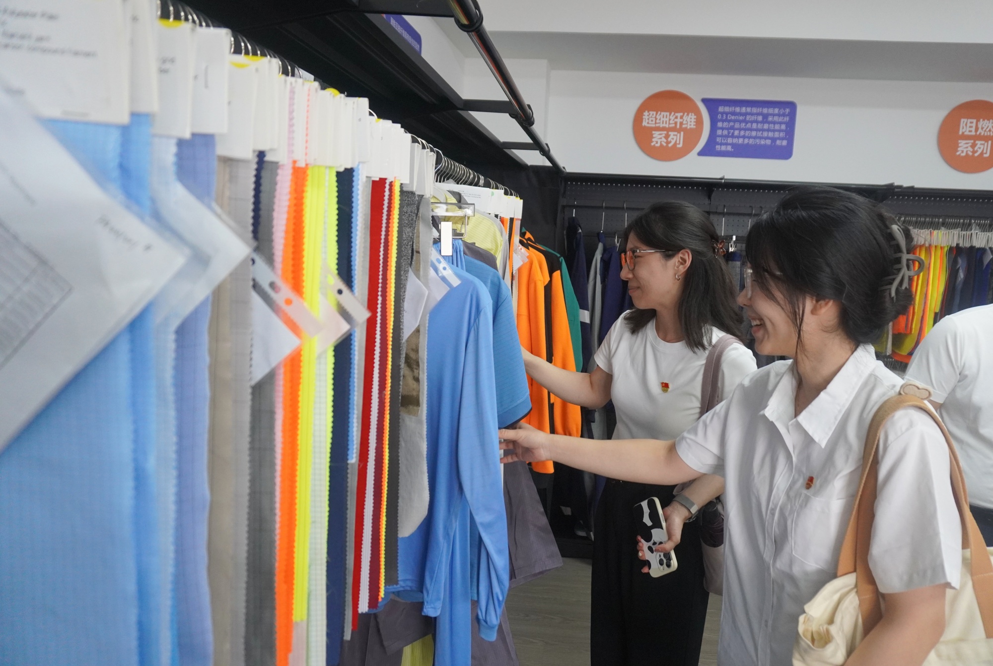 座谈结束后,双方参观了苏豪纺织集团所属省纺研所公司南京研创中心。在这里,回望企业科技创新的“来时路”,党团员们详细了解省纺研所公司在防静电纱线系列、阻燃纱线系列和循环再利用纱线等领域的研发成果与市场应用情况,以及公司通过独立站拓展海外市场,持续获取订单的喜人成绩,直观感受到苏豪纺织集团在改革发展中坚持科技创新、主动求变的丰硕成果。此次参观学习,进一步坚定了党团员们将学习成果转化为推动发展的实践力量,大家纷纷表示,要立足岗位,把联学共建收获切实转化为锐意进取的精神动力和攻坚克难的实干本领,为苏豪纺织集团转型升级和高质量发展贡献智慧与力量。
