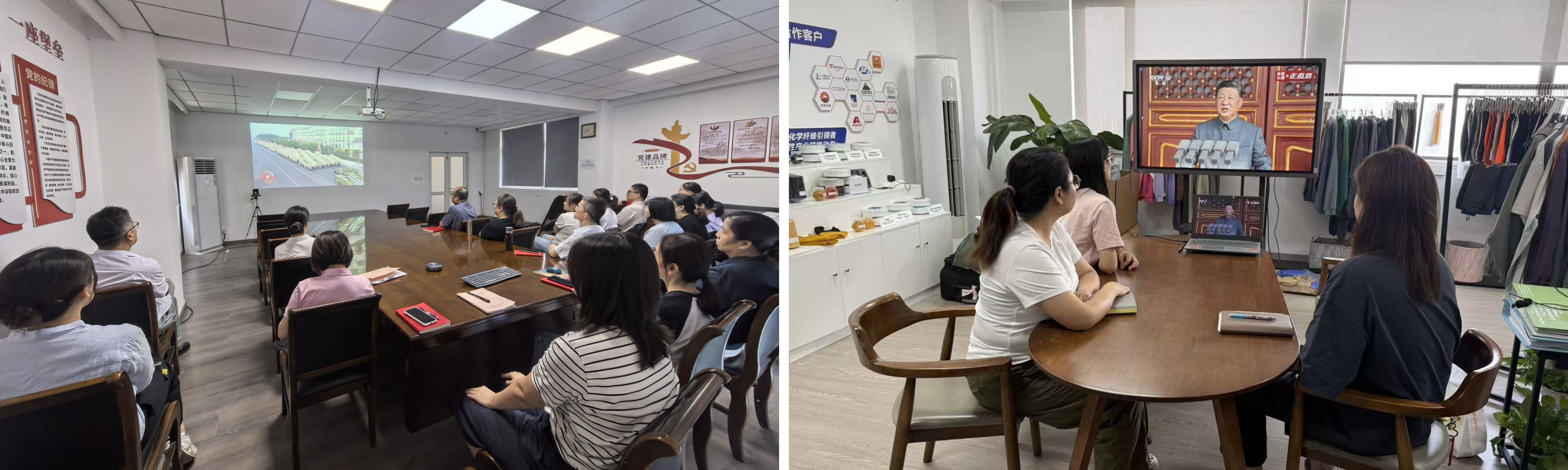 2025年9月3日,纪念中国人民抗日战争暨世界反法西斯战争胜利80周年阅兵式在北京天安门广场隆重举行 。纺研所公司党总支组织全体党员干部集中观看了这场盛大阅兵盛典,共同铭记伟大历史胜利,凝聚正义和平力量。