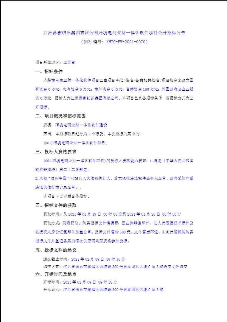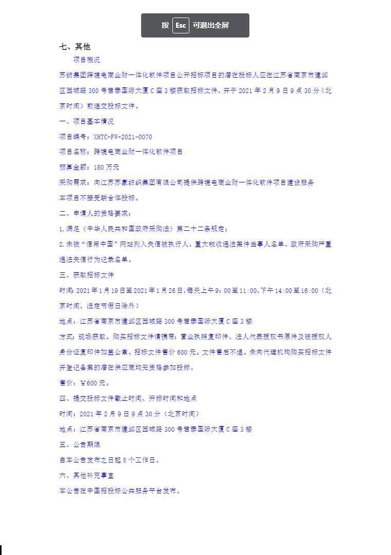 雷火·竞技(中国区)电竞官网跨境电商业财一体化软件项目公开招标公告