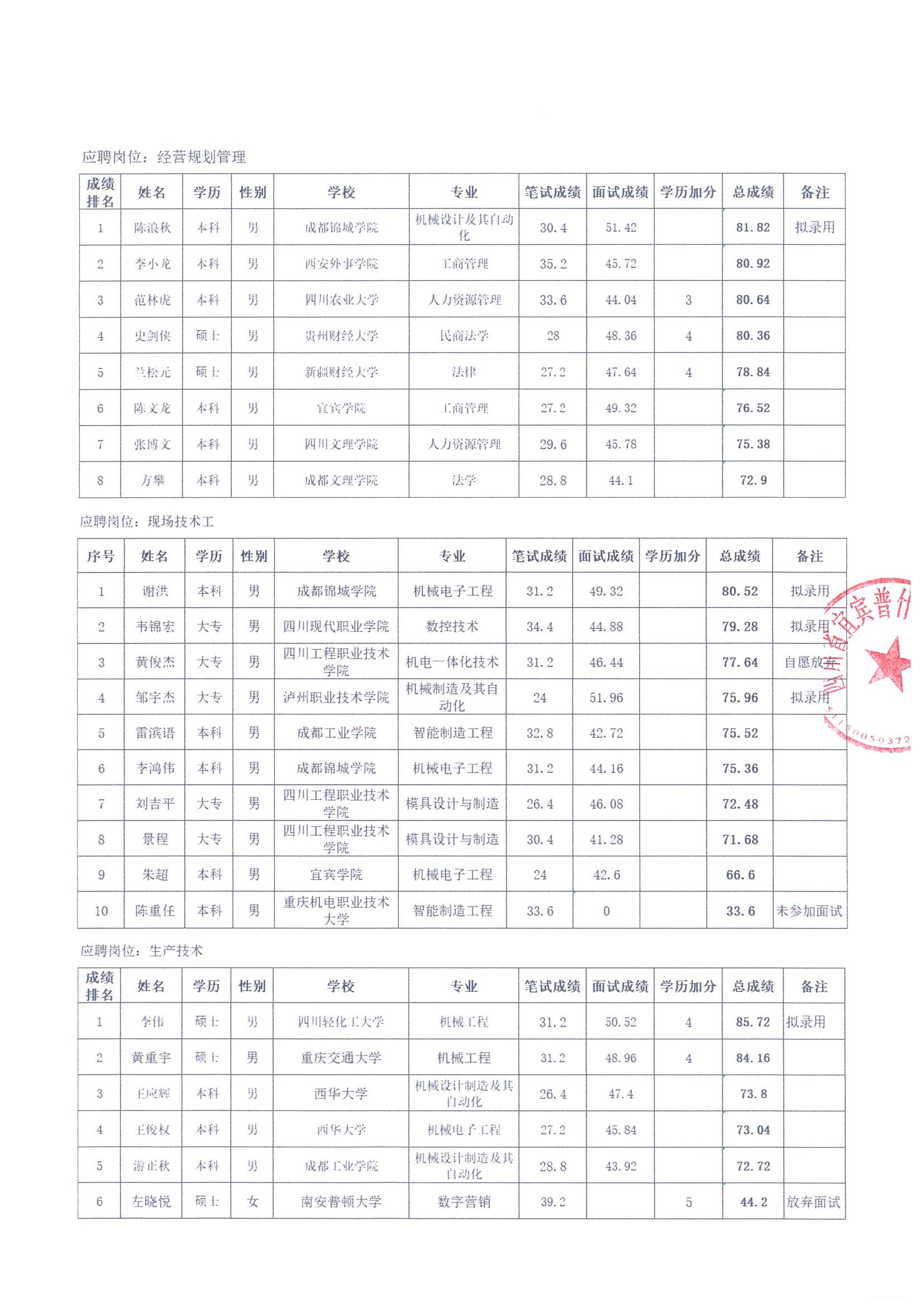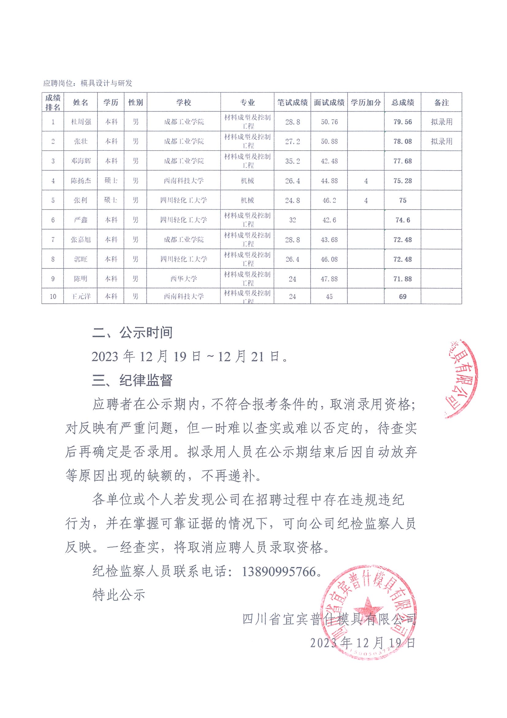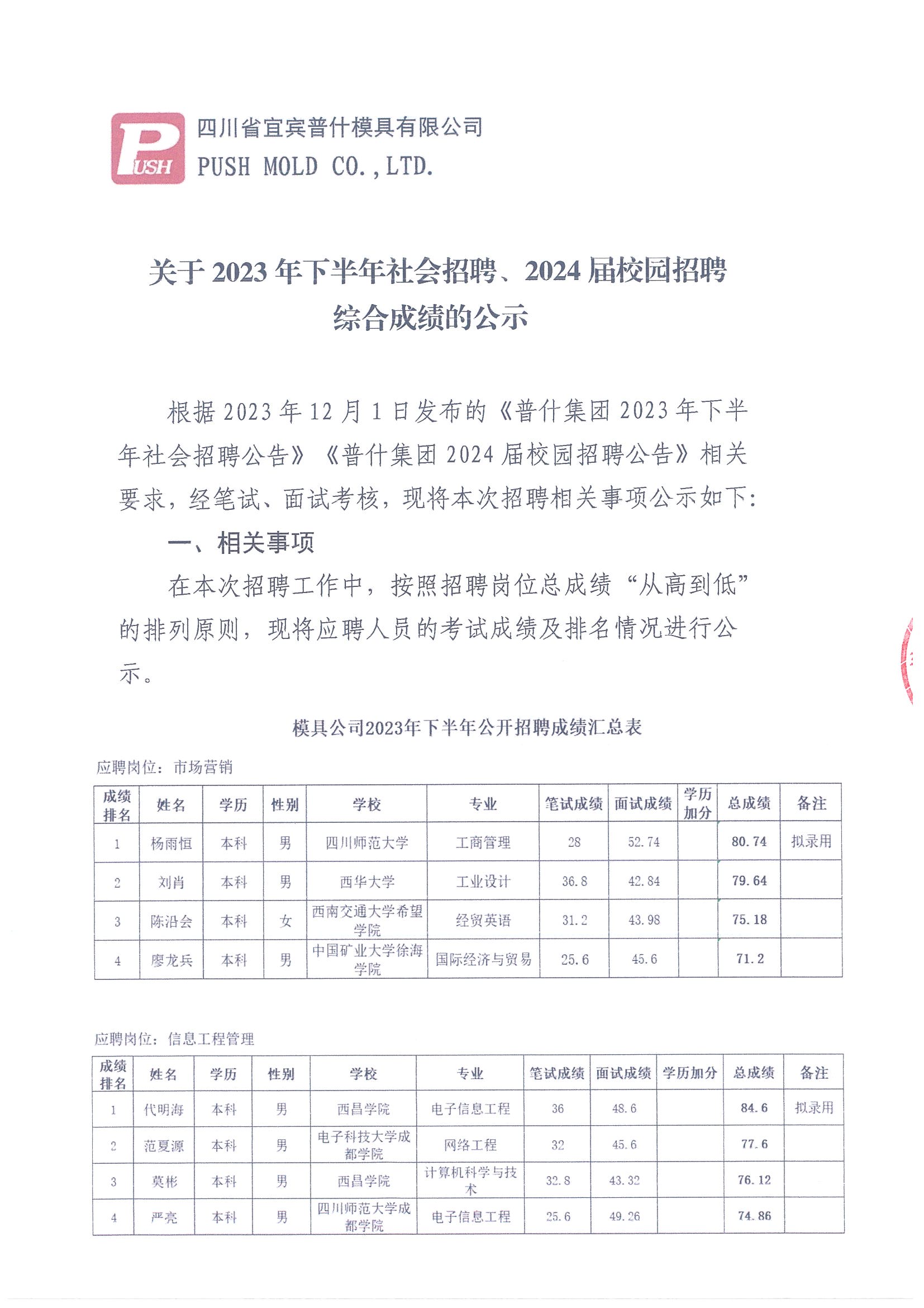 关于2023年下半年社会招聘、2024届校园招聘综合成绩的公示
